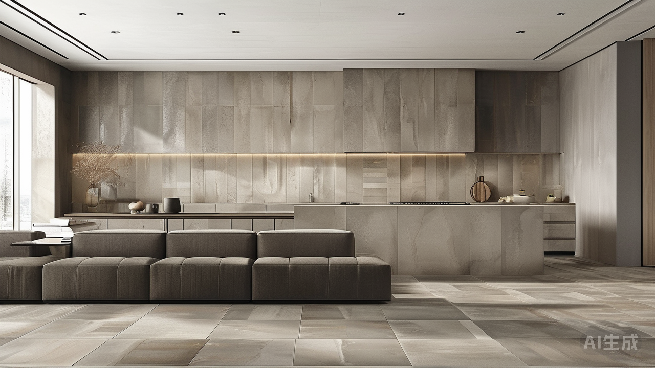 纹理的深浅亦是精微之道。厨房地面宜选云纹石面,耐污而不失雅致;客厅则可用浅木纹肌理砖,倒映晨光时,暖意悄然弥漫。从云纹的深邃到木纹的舒展,纹理变化控制在三级以内,如水墨浓淡相宜,既在统一色系下勾勒出区域的眉目,又避免了割裂与突兀。 瓷砖如字,铺陈于空间这篇章中。小居之敞阔,非赖边界,而在于以统一的色调为经,以形态、肌理、铺法为纬,悄然织就空间的丰富肌理。一砖一色,皆是无声的叙事,令开放之地既统一连贯,又暗藏层次与生机。 |