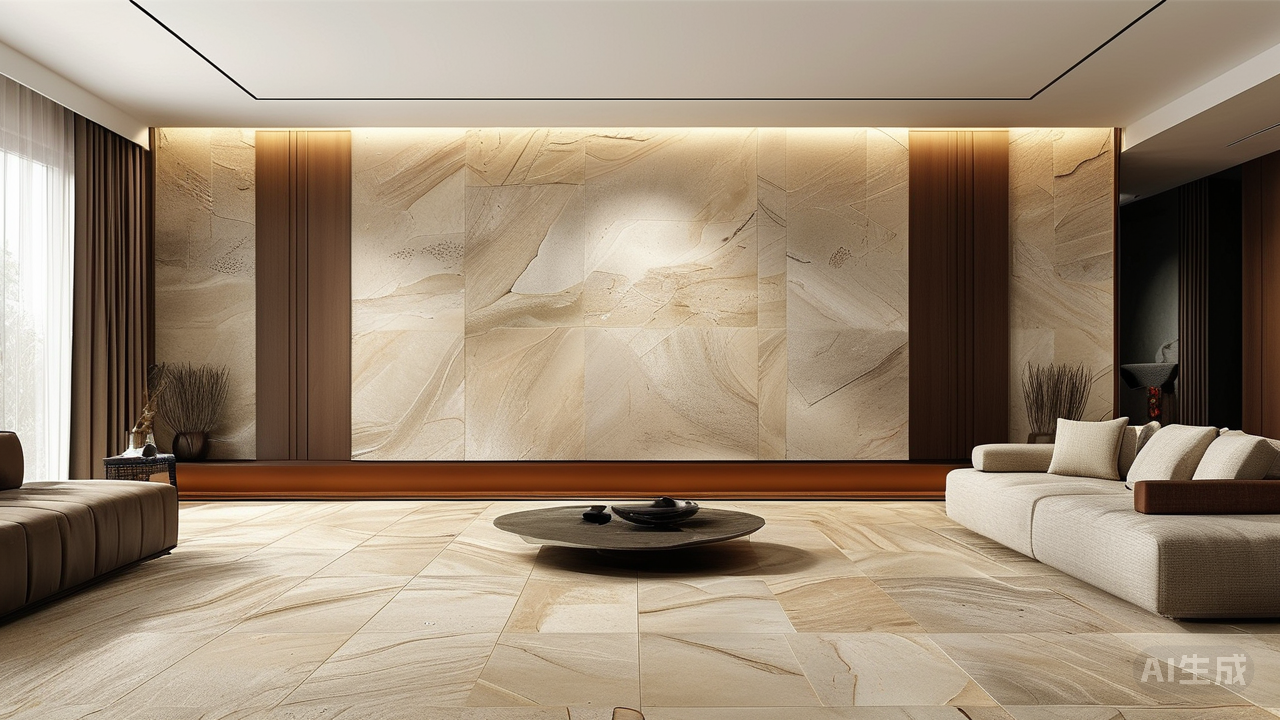 大气之境,最终归于整体的和谐共鸣。地面不再仅仅是背景,而是与空间本身、精心挑选的现代家具、艺术品般的灯具以及窗外流动的光影,共同编织成一个无声而强大的气场。大规格石材纹理瓷砖以其恢弘的尺度、自然的灵魂、内敛的质感和沉静的色调,在轻奢客厅中,不喧哗,自有声;不张扬,自磅礴。它稳稳托起空间的灵魂,让每一寸呼吸都浸润在开阔与精致的交响之中——这正是属于轻奢的、不可复制的空间诗篇。 |