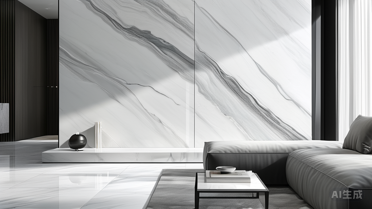 轻奢风格客厅,如何通过大幅面卡拉拉白大理石瓷砖提升空间的气派感?轻奢空间的呼吸里,每一寸肌理都需有分明的重量与呼吸感。当大幅面的卡拉拉白大理石瓷砖铺展于客厅,空间便如一幅宏阔的画卷豁然舒展。那标志性的灰色纹理,如烟似雾,在纯净如雪的基底上自由游走,仿佛凝固着阿尔卑斯山麓古老的风雪痕迹。这并非简单的材料堆叠,而是将自然亿万年的壮阔气韵,以一种克制的优雅,悄然引入现代居所的深处。