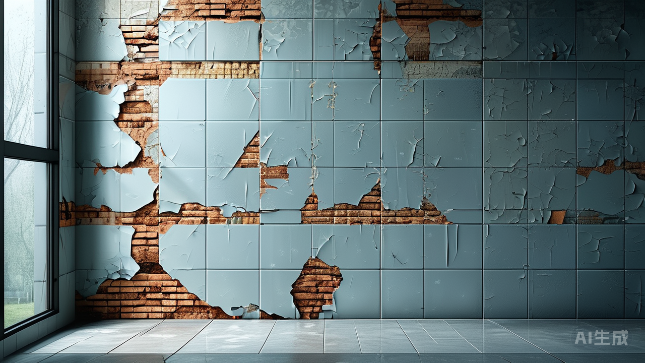 即使工艺精湛,地砖上墙后仍非一劳永逸。隐患如影随形: 空鼓如同墙体内部隐藏的微小空洞,削弱着整体的稳固;边缘或接缝处随着季节更迭、温度变化,潜藏着开裂的隐忧;最令人不安的,莫过于某天一声闷响,沉重的砖块从高处骤然坠落——其危险远非轻薄的墙砖可比。此外,地砖尺寸往往宏大,上墙后拼接的缝隙相对稀疏,若填缝工艺稍逊,不仅视觉上显粗犷,更易藏污纳垢,在潮湿的厨卫空间尤甚。曾有案例,业主王先生偏爱某款大规格地砖的纹理,坚持将其铺满卫生间墙面。最初效果大气磅礴,然而不足三年,淋浴区墙面便陆续出现几处空鼓,其中一块砖毫无征兆地剥落,险酿事故。事后检查,问题根源正是砖背处理不够彻底,粘结层未能完全“咬住”致密光滑的砖体。